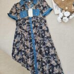 • جدول سایزبندی : دور سینه 92، دور کمر در حالت عادی 80 و تا 98 کشسانی، قد آستین 22، دور بازو 34، دور باسن 102، قد پیراهن 108، قد آستر 98