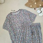 • جدول سایزبندی : دور سینه و باسن در حالت عادی 116 و تا 146 کشسانی، قد آستین از گردن 35، دور بازو در حالت عادی 38 و تا 52 کشسانی، قد بلوز 68، دور کمر در حالت عادی 64 و تا 140 کشسانی، قد فاق 35، دور ران در حالت عادی 68 و تا 92 کشسانی، قد شلوار 98